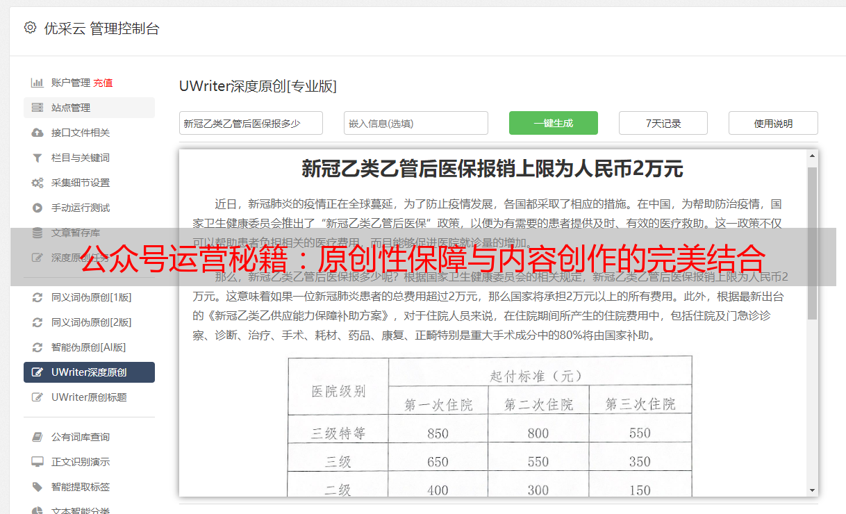 优采云 发布时间: 2024-11-06 05:35公众号的运营过程中,确保内容的原创性是至关重要的环节。此外,使用优采云工具还能大大便利内容创作。以下是一些相关经验的分享。