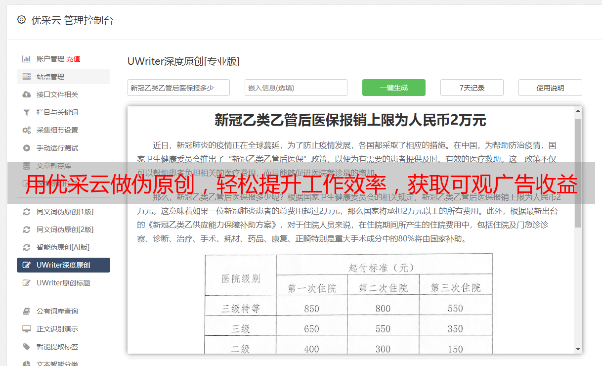 用优采云做伪原创,轻松提升工作效率,获取可观广告收益
