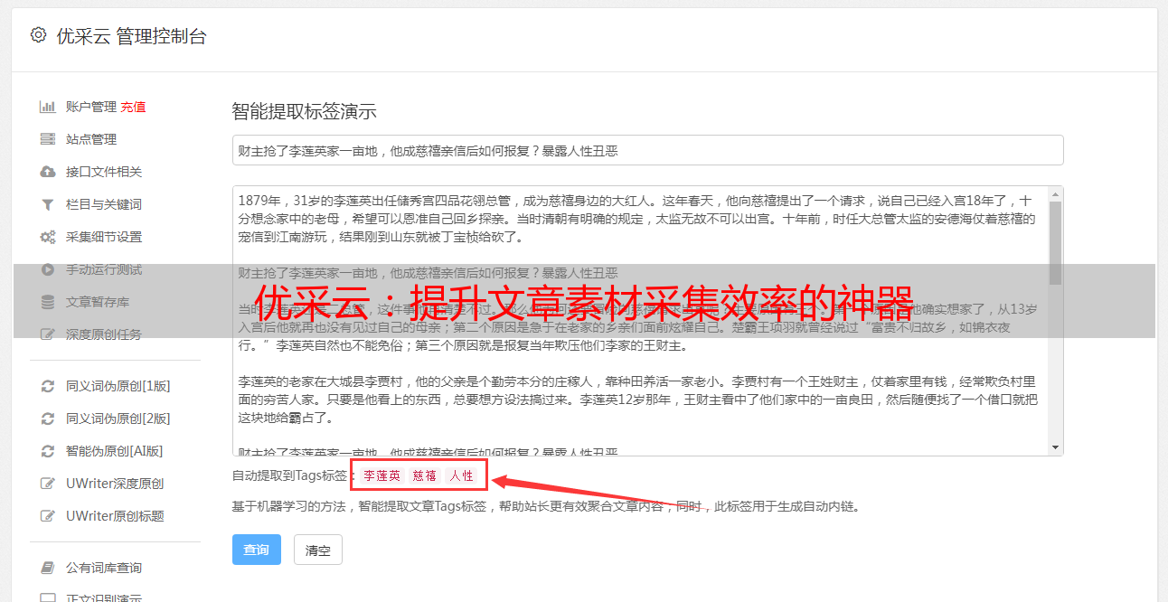 优采云 发布时间: 2024-11-16 05:02在当前的内容创作行业中,文章素材的采集和下载显得尤为关键。优采云作为一款出色的工具,极大地提升了用户搜集文章素材的效率。