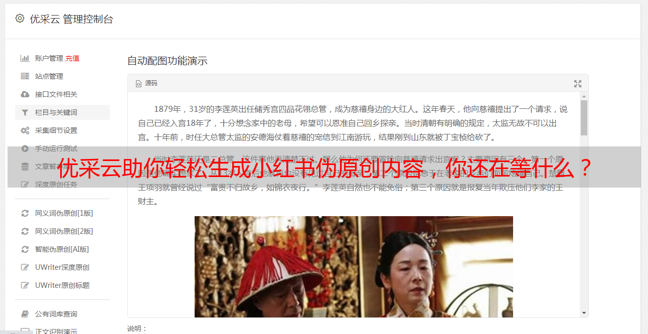 优采云助你轻松生成小红书伪原创内容,你还在等什么?