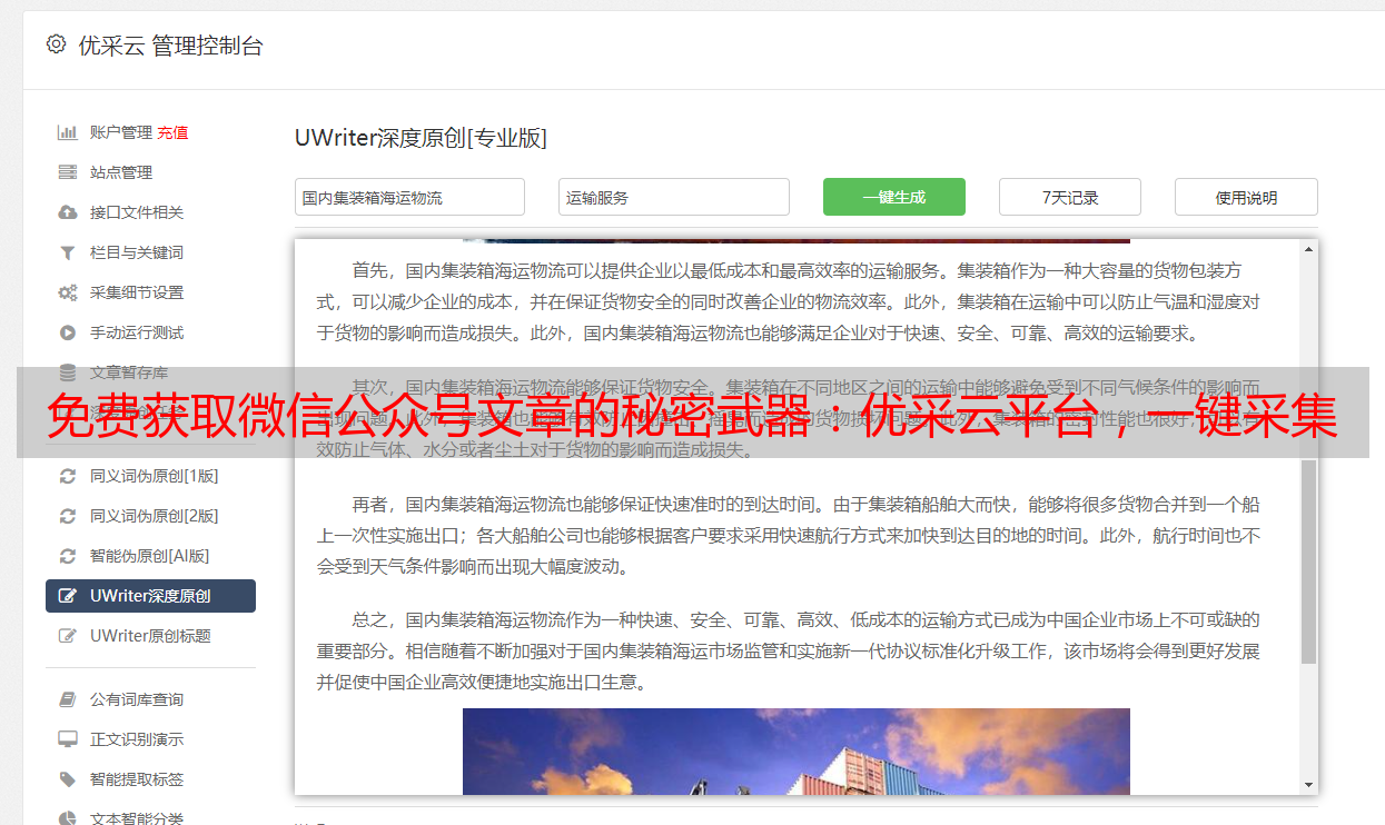 优采云能够提升文章采集后的输出格式质量。比如,它能将采集到的文章转换成Word或txt等广泛使用的格式,便于后续编辑处理。