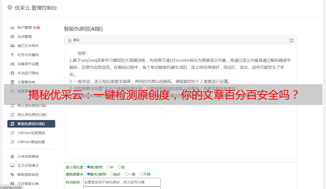 揭秘优采云:一键检测原创度,你的文章百分百安全吗?