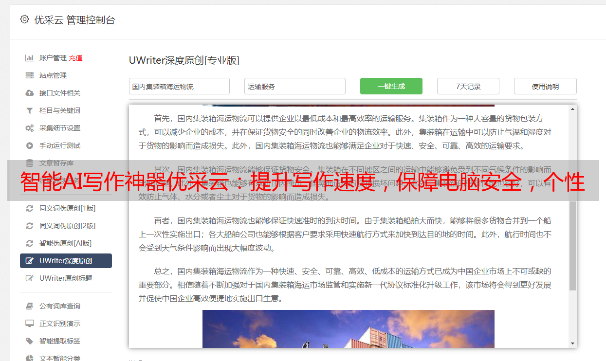 智能AI写作神器优采云:提升写作速度,保障电脑安全,个性化定制文章风格