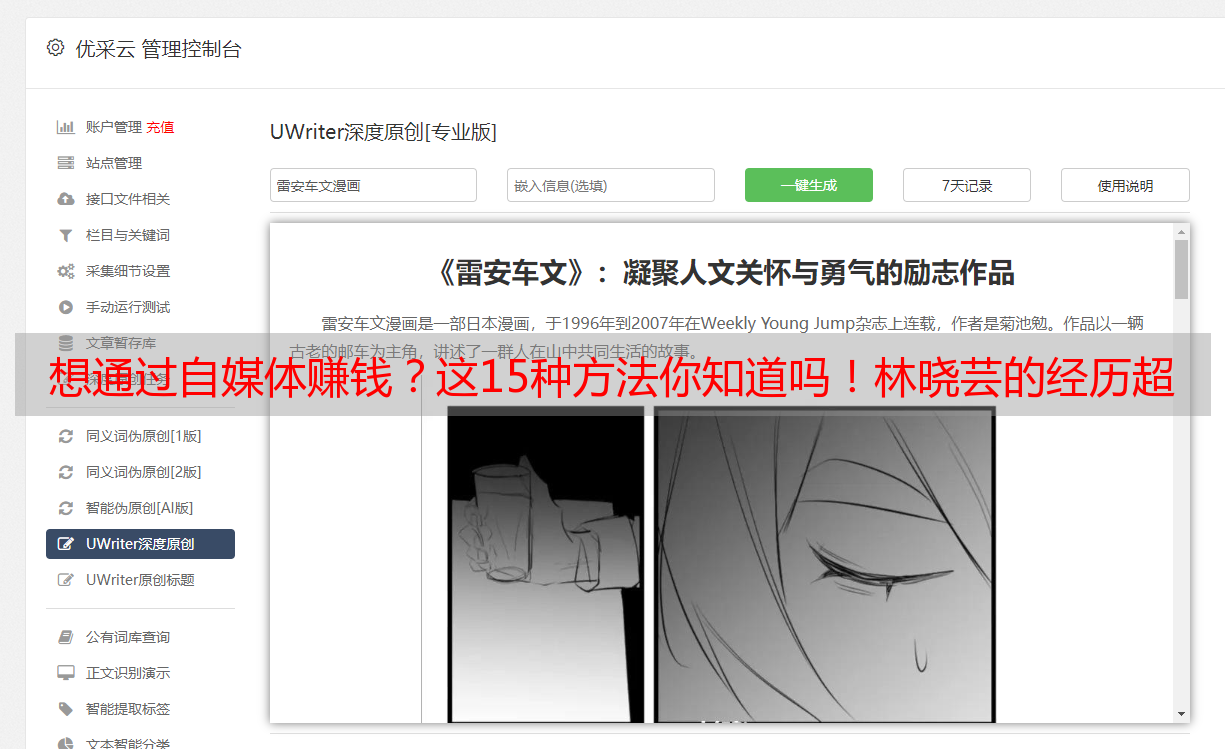 这时候,她借助优采云的原创任务功能,启动AI生成算法,设定期望文章长度,参照网络热点予以植入。