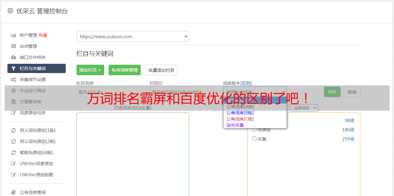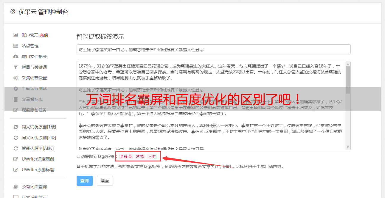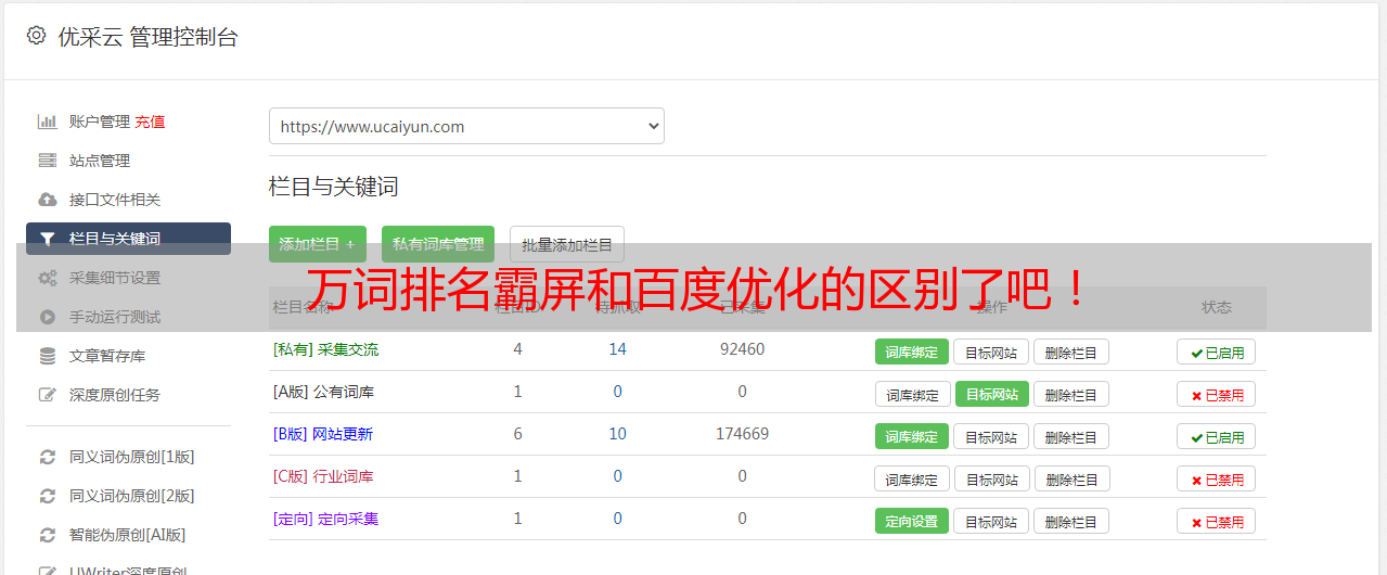 优采云 发布时间: 2021-07-01 05:57万词排名霸屏和百度优化的区别了吧!