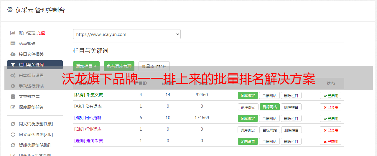 沃龙旗下品牌一一排上来的批量排名解决方案