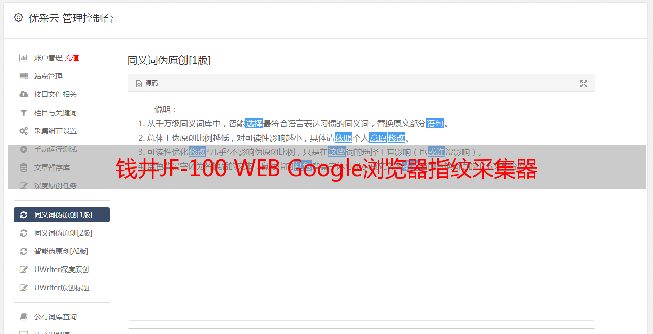 钱井JF-100 WEB Google浏览器指纹采集器