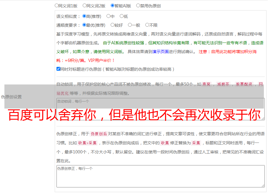 百度可以抛弃你,但他想抛弃你的用户。对于你的大用户,他不会再收录于你,所以我们要树立没有百度的生活理念。相信之后,百度也悄然回归。
