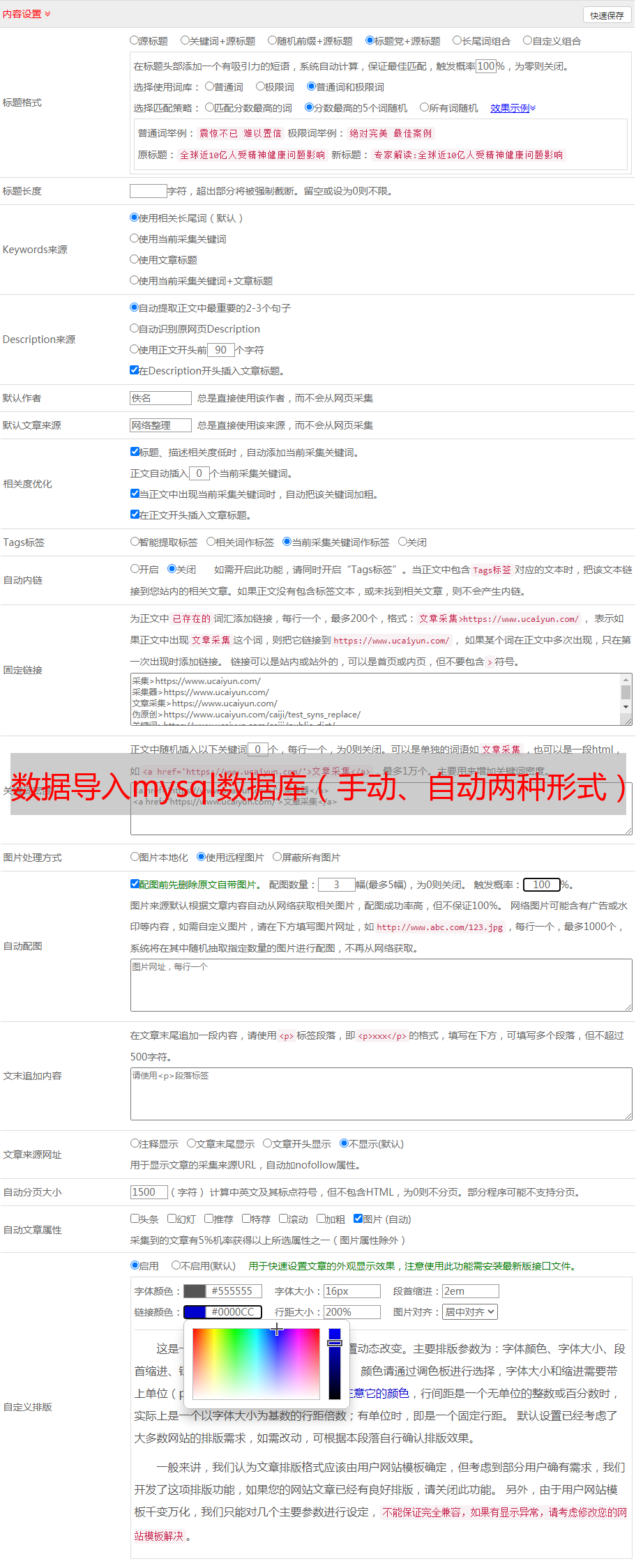2.自动导入数据库:这种方法可以实现边采集边导,按照设置的时间间隔启动导入计划,这种方法只支持云采集。