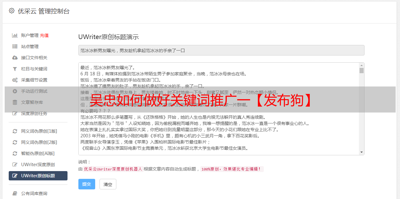 但不管你怎么定位,你都还能围绕以上两点提出建议:你晓得哪些,您的对手疑惑哪些,第关键词是云媒体软文和传统,即数据可视化,通过关键词挖掘工具,我们可以找到网民需求词的索引,虽然不这么确切,但几乎是一模一样的,至于哪些是百年释放狗指数,我确信大多人应该明白它,你若果不了解它,你能搜索它吗,我不容易在这里多说哪些,随州放狗疗效怎样,哪个更有价值,回答:估计是前者,出于云媒体带关键词索引的软文会给您带来更加多的流量和商机,毕竟需求是有的,在关键词选择方面,我们没必要选择这种高索引、大竞争的词。个个长尾关键词都代表着同一个利基需求,所以我宁可在流量小的云媒体上写愈发多的长尾关键词,它们会很快在百度主页上列举。
