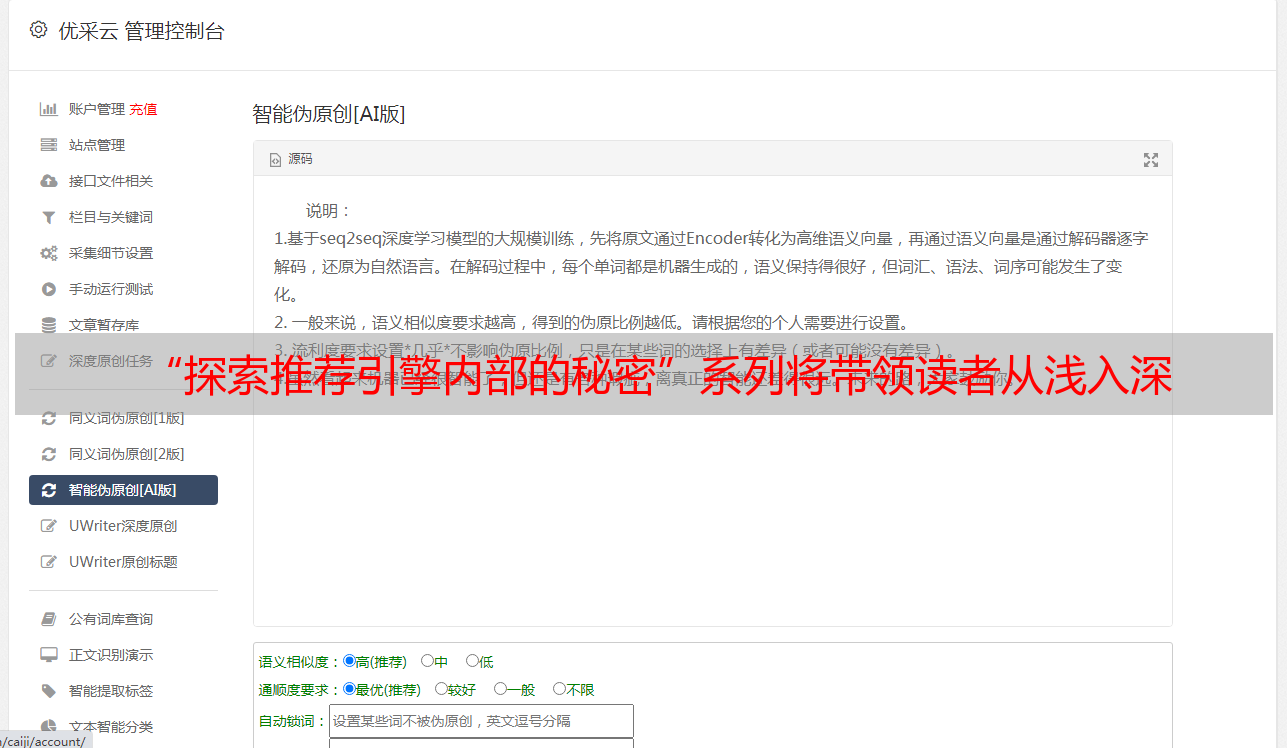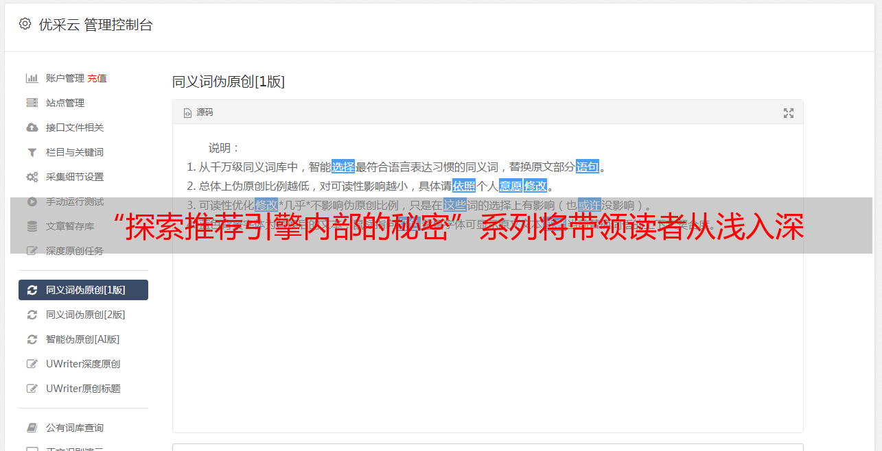优采云 发布时间: 2021-07-06 01:02“探索推荐引擎内部的秘密”系列将带领读者从浅入深