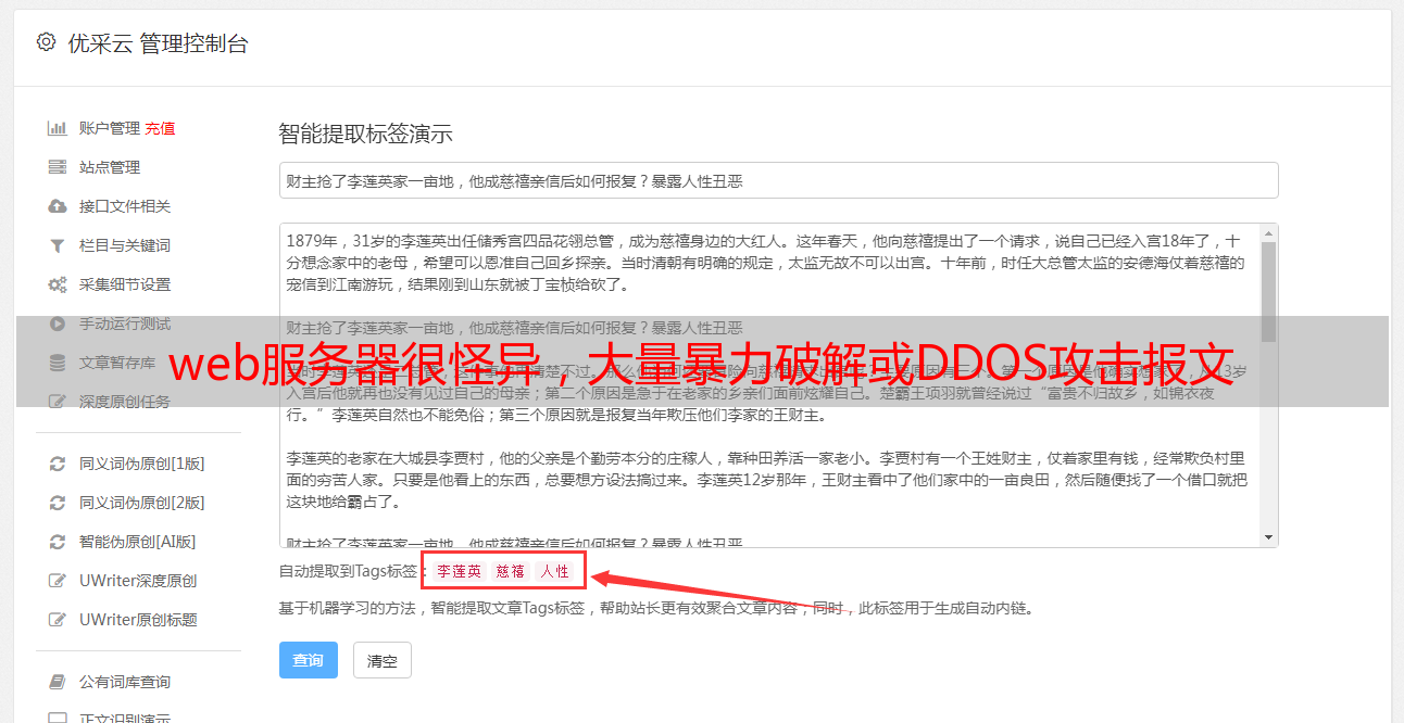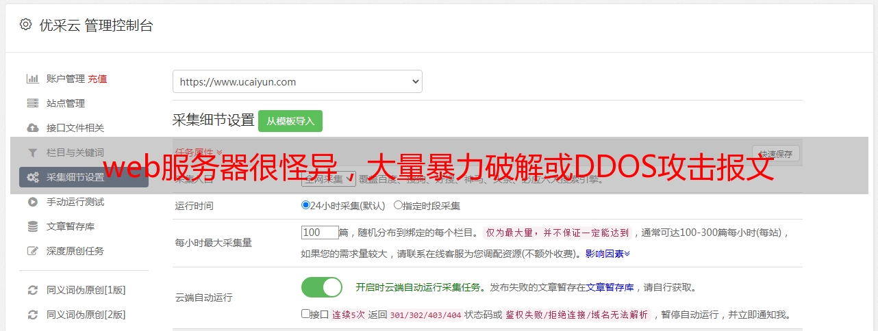 优采云 发布时间: 2021-07-07 00:22web服务器很怪异,大量暴力破解或DDOS攻击报文