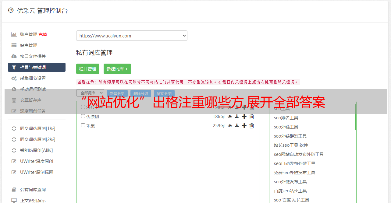 其他答案:SEO网站optimization 做这些:1、SEO 设置。优化SEO网站的前提,首先设置TDK,三个重要参数:title、keywords、description。因为TDK是网站优化的核心元素和重要标志。后面的优化是围绕TDK进行的。设置TDK是提升网站优化排名的方法之一。 2. 内容标题优化。内容是网站流量的来源之一。优质的内容可以提升网站的排名,带来无限的流量,所以有一个吸引顾客眼球的标题是多么重要。内容标题很有吸引力,客户会有点击你的内容的愿望。 3. 明确目标关键词。在写内容的时候,应该重点确定核心关键词和关键词。如果你不确定关键词,你应该优化,那么你就像一只无头苍蝇,最终不会有优化效果。 4.原创“同公众号”的内容。 原创的内容会增加网站的权重排名,抄袭和伪原创的内容会对网站的权重产生不利影响。如果根据自己的专业知识和思维写出内容,网站将带来无限收益。 5.外链发布。一个优质的外链平台可以增加网站的收录和流量。它还有助于网站 的排名。这就是智能优化排名系统辅助SEO网站优化排名的方式。使用优化排名系统帮助网站关键词排名。智能优化系统:“千城千站”