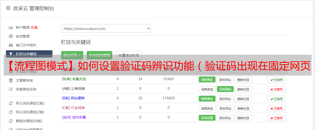 优采云 发布时间: 2020-08-09 10:28在采集数据的过程中,我们常常会碰到须要输入验证码的情况,优采云采集器支持验证码手动辨识和自动打码功能。