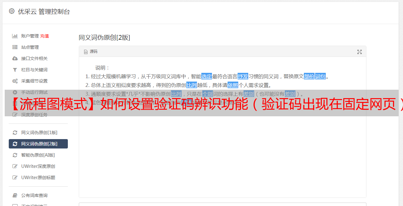 步骤4:然后点击两侧提示中的“验证码识别”,然后会生成右图提示: