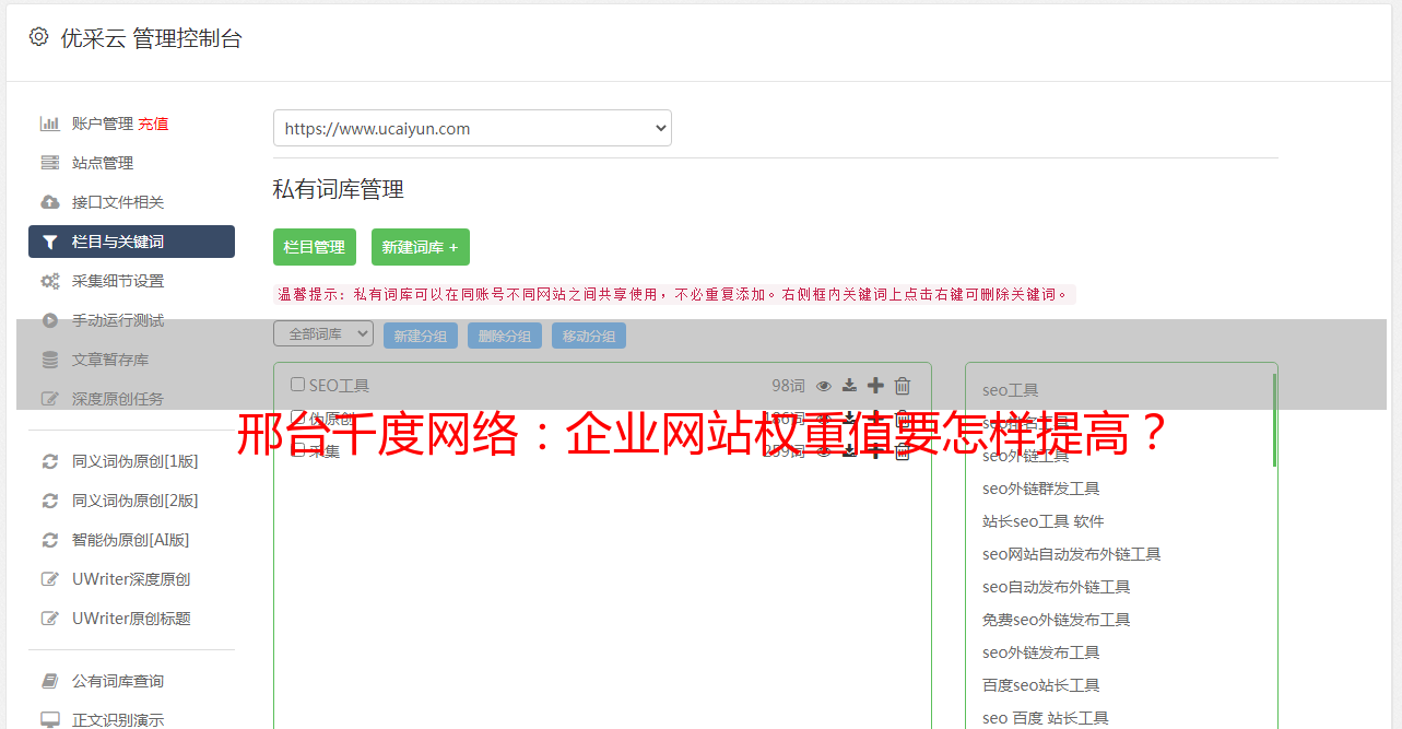 使用关键词增加网站权重的方法是利用关键词的布局来提高关键词在页面上的相关性。比如网站tdk标签中关键词布局合理,内容中的图片和文章页面都可以关键词布局。这样一来,网站content 和关键词 的相关性就更高了。标题的关键词越多权重越高,布局关键词越能最大化网站的权重。
