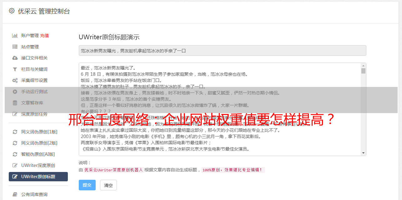 Seo 原本是一个比较无聊的东西。因为是一个比较机械枯燥的职业,如果文章太死板的话,很少有人能看懂。 网站内容原创会在一定程度上改善用户体验,增加网站的信誉度和友善度。关于搜索引擎,原创确实更有利于排名。