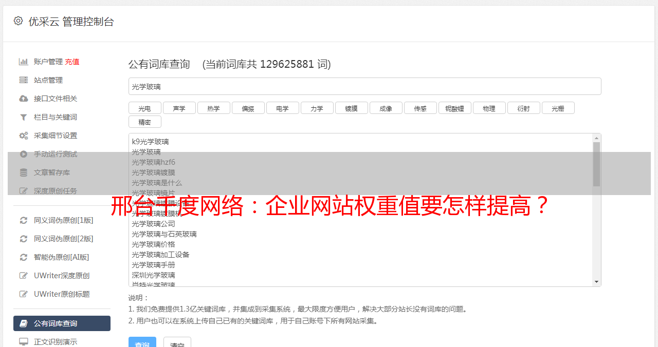 如何增加enterprise网站的权重值? SEO 是一项持久的任务。今天如果你想在百度上获得更高的网站排名,你可以找到网站推广公司并与他们一起优化凭借技术和SEO经验,你可以轻松获得高权重和高流量的网站排名.