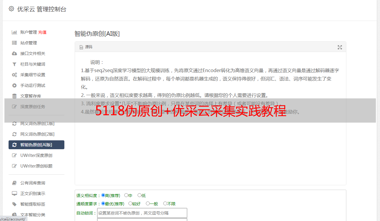 在优采云采集器中,利用5118智能原创插件,不再须要经过人工处理,即能批量生产出内容指纹完全不同的文章,大幅提升了内容SEO采编的工作效率,让文章更容易被收录。