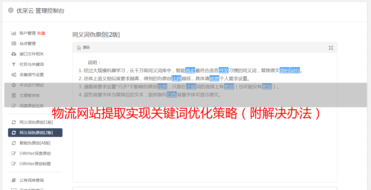 关键词的插入是搜索引擎优化的最终结果。 关键词提取后,需要插入到最佳位置,提高搜索引擎索引排名。一般物流网站的关键词插入位置是: