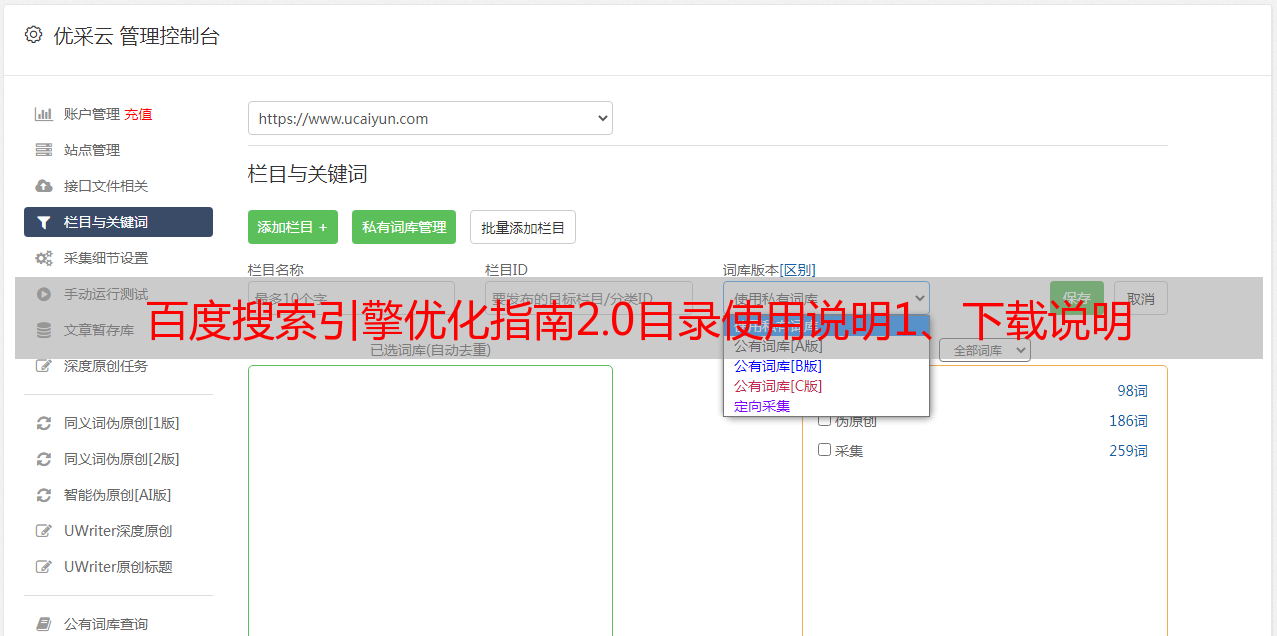 优采云 发布时间: 2021-07-11 21:47百度搜索引擎优化指南2.0目录使用说明1、下载说明