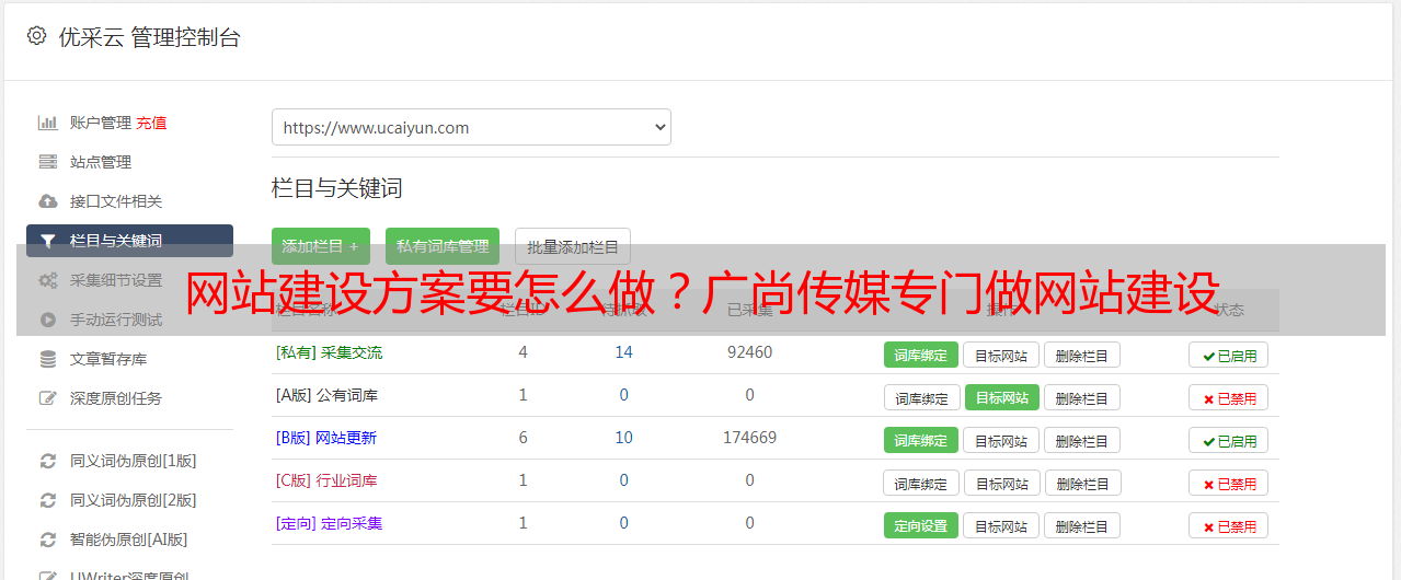 优采云 发布时间: 2021-07-12 02:13网站建设方案要怎么做?广尚传媒专门做网站建设