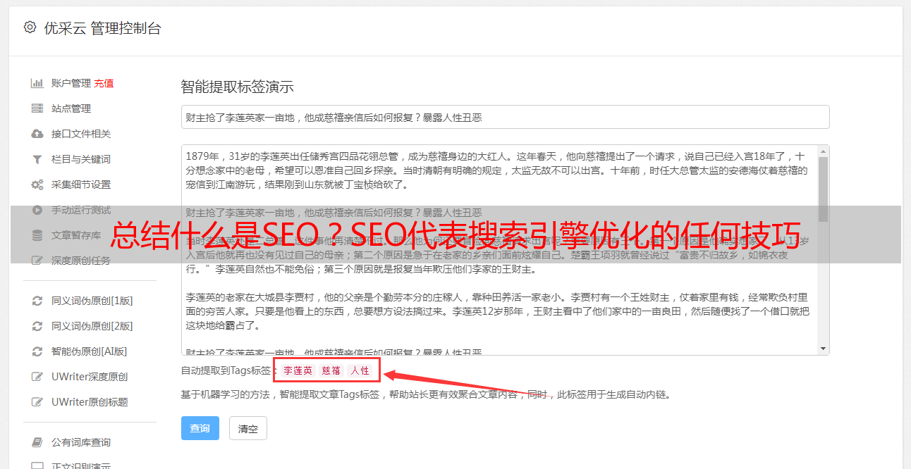 优采云 发布时间: 2021-07-12 03:05总结什么是SEO?SEO代表搜索引擎优化的任何技巧