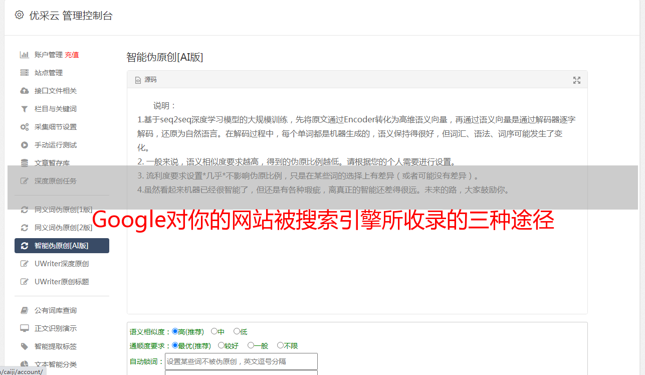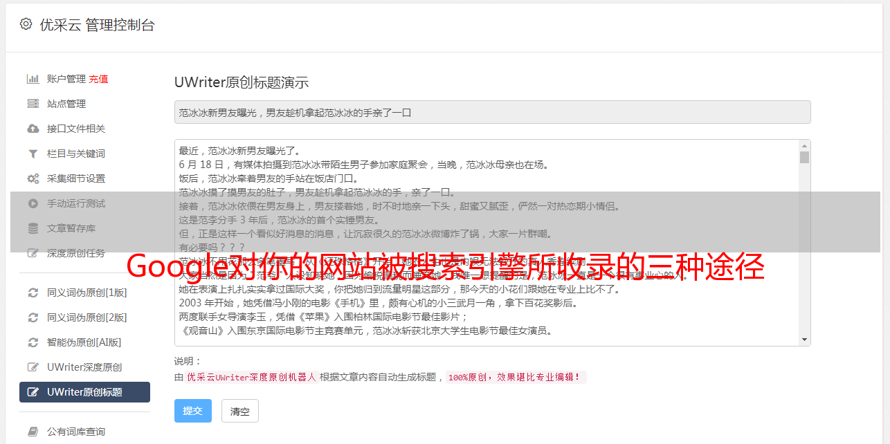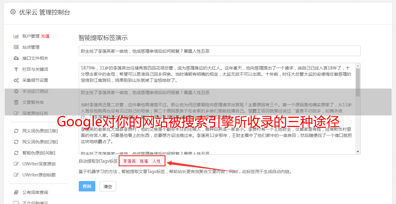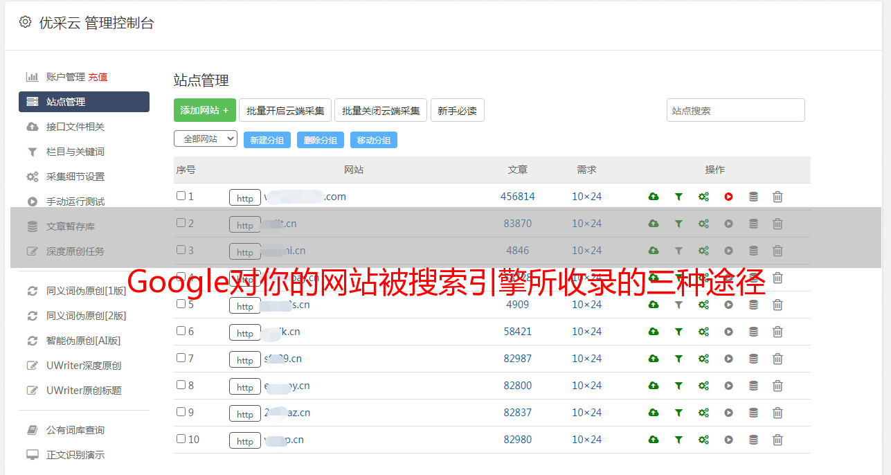 网站 在规模上“更小”。较小的规模意味着网站上的网页数量不超过500。使用简单的网站托管服务,例如Blogger或Wix。 网站已建立完善的内链。这意味着谷歌可以通过点击主页上的链接找到网站 上的所有重要网页。需要出现在索引中的媒体文件(视频、图片)或新闻页面并不多。点击进入通过生成,输入个人网站地址,点击开始。