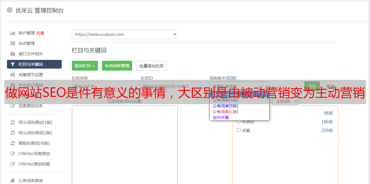 优采云 发布时间: 2021-07-13 03:07做网站SEO是件有意义的事情,大区别是由被动营销变为主动营销