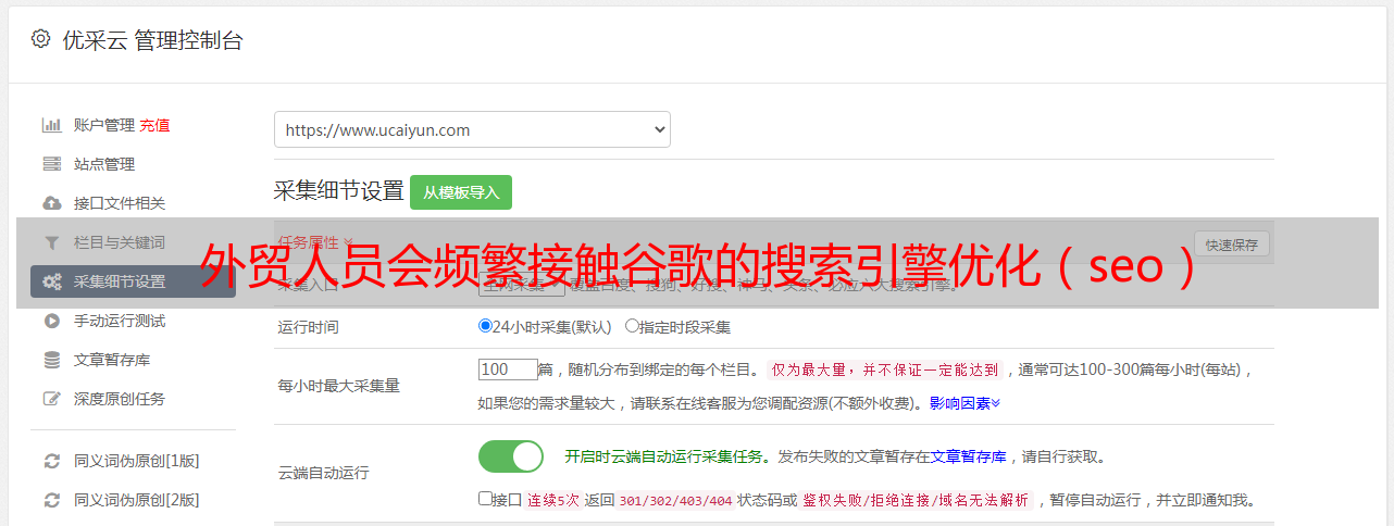 优采云 发布时间: 2021-07-14 01:00外贸人员会频繁接触谷歌的搜索引擎优化(seo)
