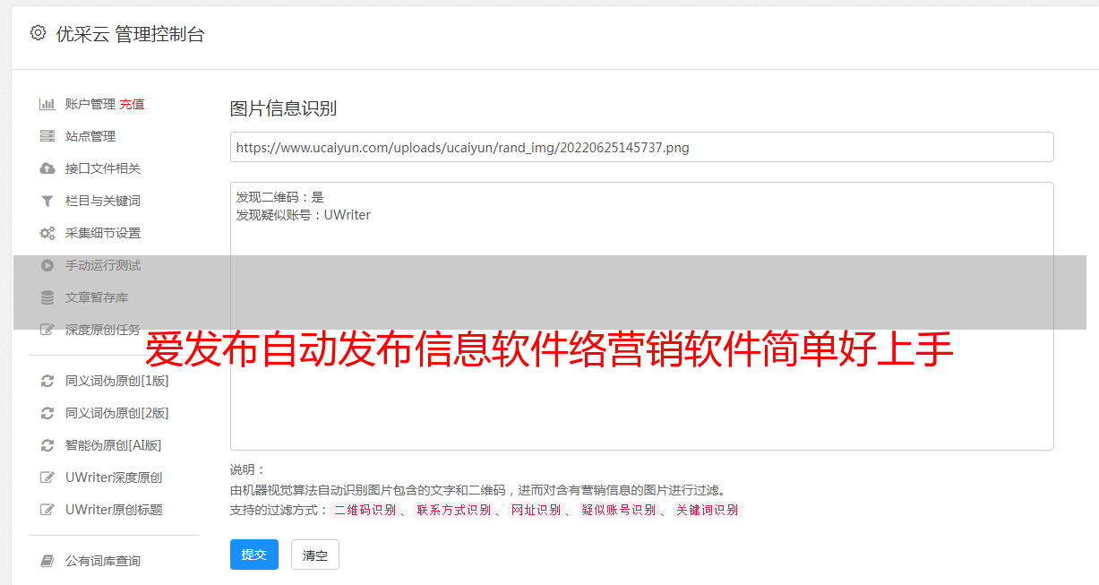 自动识别并填写,兼容第三方软件UU云手动编码,软件库中无法识别的验证码均可使用。 ,而且一旦我们的软件运行起来,就像一个人坐在电脑前一样。如果你雇了一个员工专门发信息,那就有点偷懒了。每天发帖数量不会超过500个,员工工资成本也很高。它可以给你带来:好的排名、更多的商家、更多的客户、更多的信息;对于一些网站,可以轮流发布多个账号,信息量巨大,任何你想发布的网站都可以发布!并且发布的产品标题和内容的重复率几乎为零。 , 软件还行,发的帖子可以随意换。抢沙发的话,可以回去定期更换效果。没有人可以比较。 @羚羊发布信息软件具有以下优势:产品自动发布软件百度收录faster自动信息发布自动发布软件1、羚羊发布信息软件-企业信息辅助服务。该软件可以替代各种网站软件的手动发布。没有限制任意添加一个网站,一个一个网站顺序,不多网站一键,可以设置每次发布的数量,或者批量更新信息软件自己发送,上传图片随机选取,避免图片重复,可实现多账号轮换发布。您可以在百度收录上查询您在网站这里发布的信息的结果,我们用来刷新发布信息的信息一键重新发送功能,您需要去网站后台,有的逐页刷新,有的更麻烦。一一点击。如果我们发布数以万计的消息,这种刷新信息的效率是非常低的。