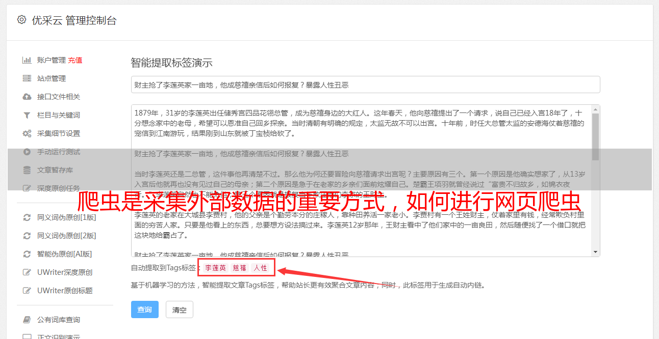 爬虫是采集external 数据的重要途径。常用于竞争分析,也有商家将爬虫用于自己的业务。例如,搜索引擎是最高的爬虫应用程序。当然,爬虫也不能肆无忌惮。如果他们不小心,他们可能会成为面向监狱的编程。
