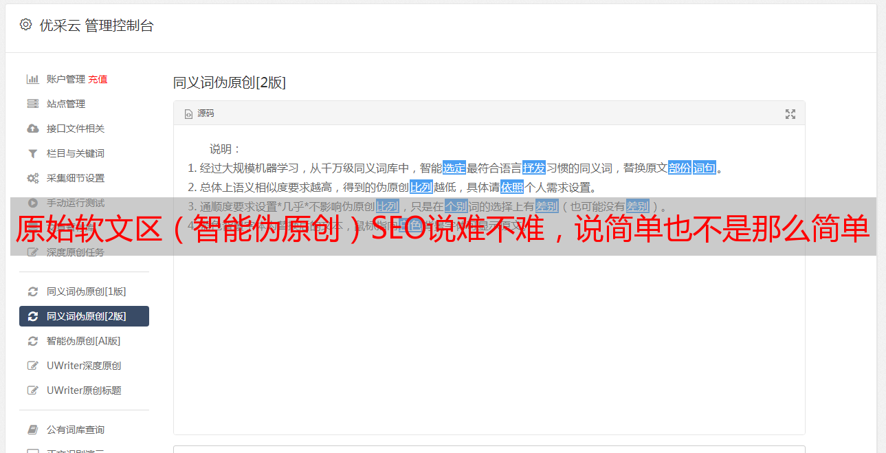 原始软文区(智能伪原创)SEO说难不难,说简单也不是那么简单