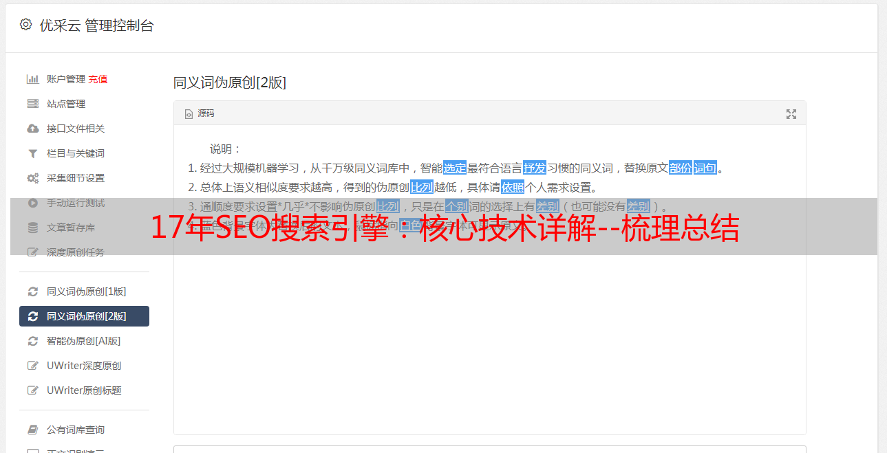 优采云 发布时间: 2021-07-17 19:0017年SEO搜索引擎:核心技术详解--梳理总结