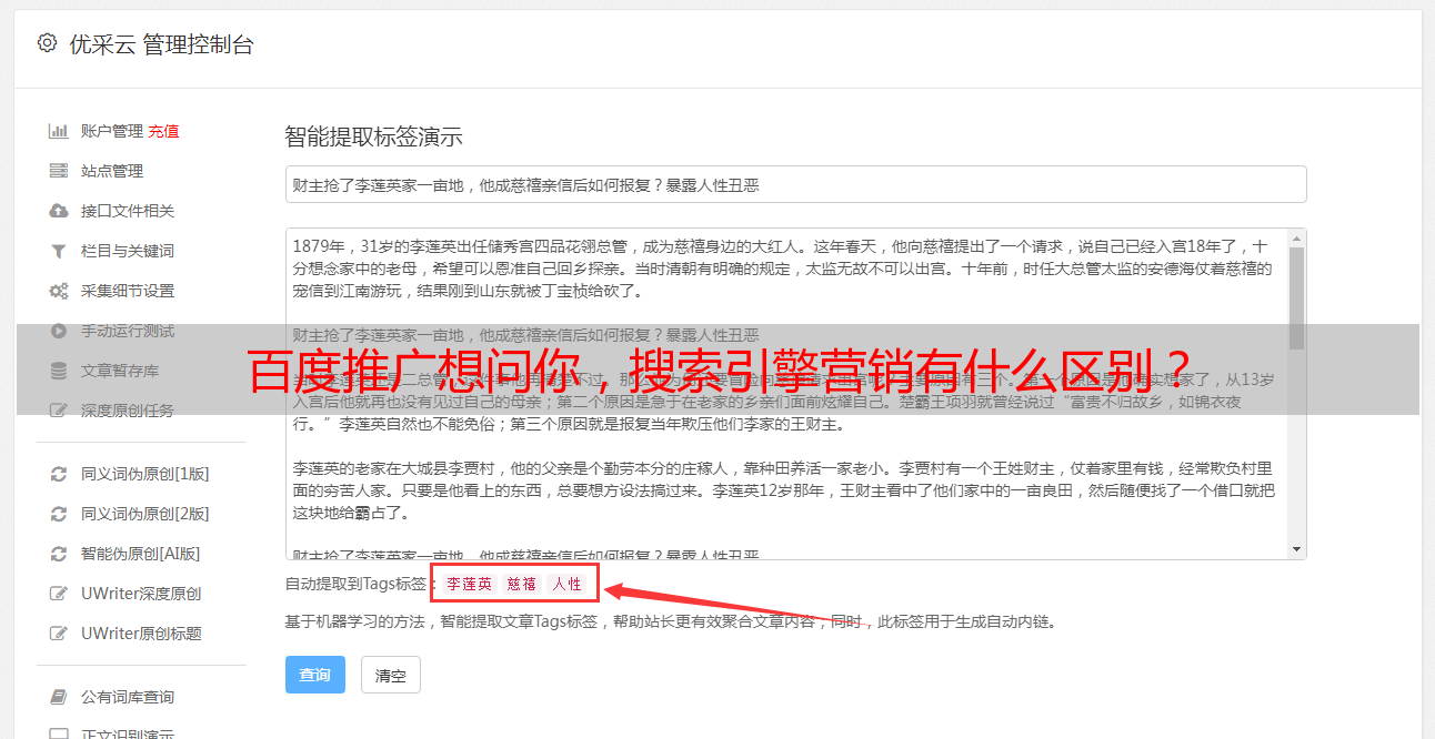 优采云 发布时间: 2021-07-20 02:09百度推广想问你,搜索引擎营销有什么区别?
