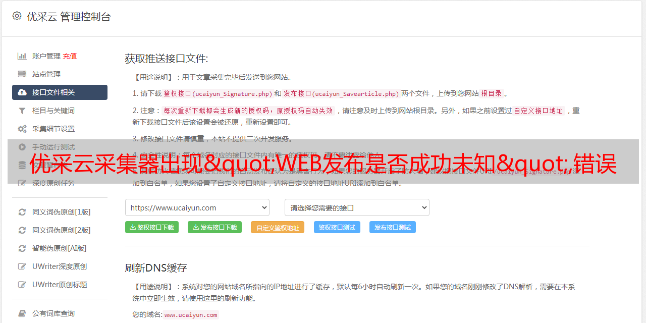 优采云采集器出现"WEB发布是否成功未知",错误缘由和解决办法
