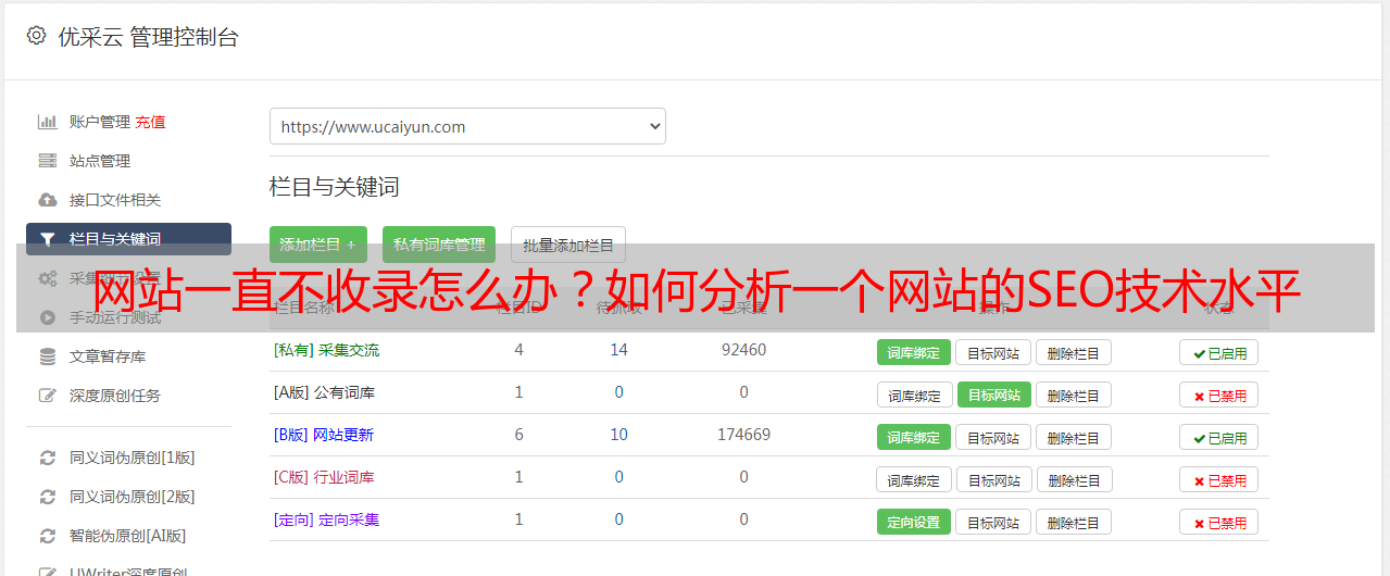优采云 发布时间: 2021-07-22 04:14网站一直不收录怎么办?如何分析一个网站的SEO技术水平