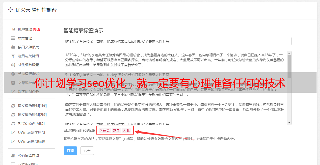优采云 发布时间: 2021-07-23 03:08你计划学习seo优化,就一定要有心理准备任何的技术