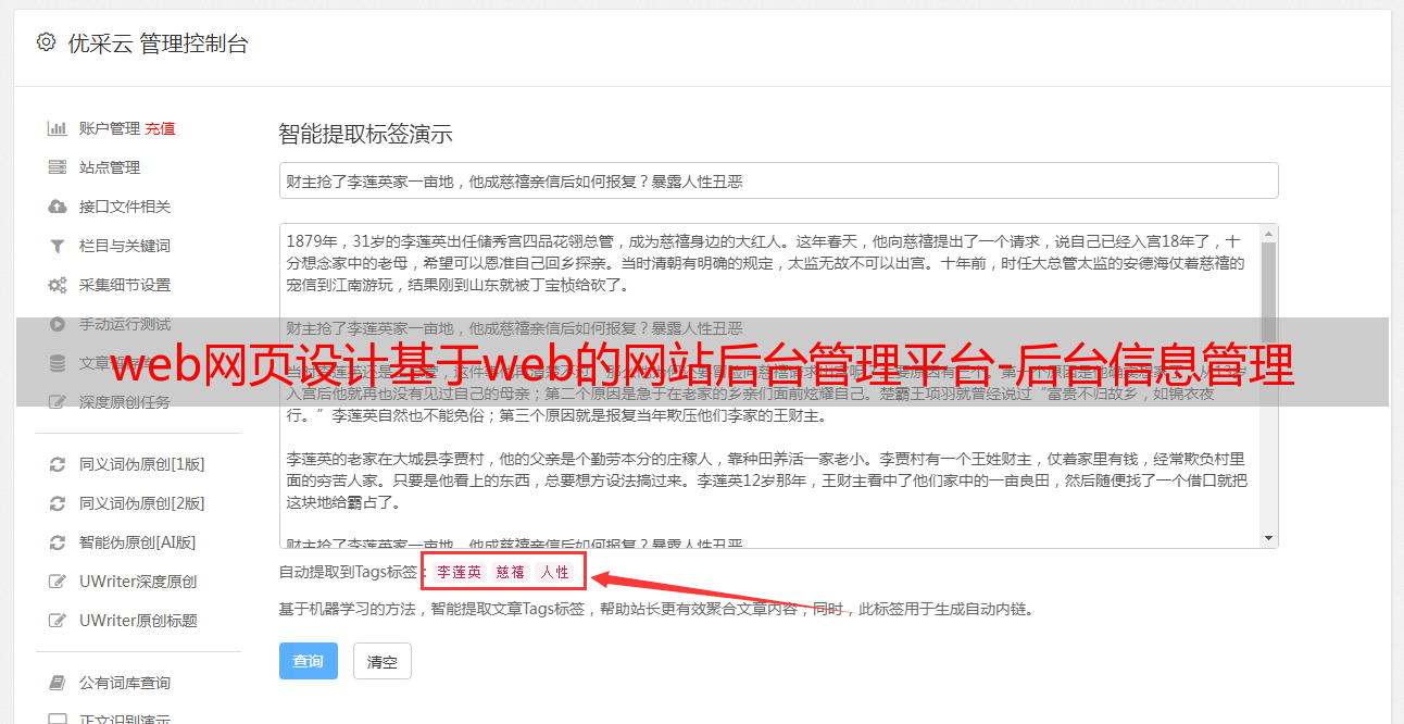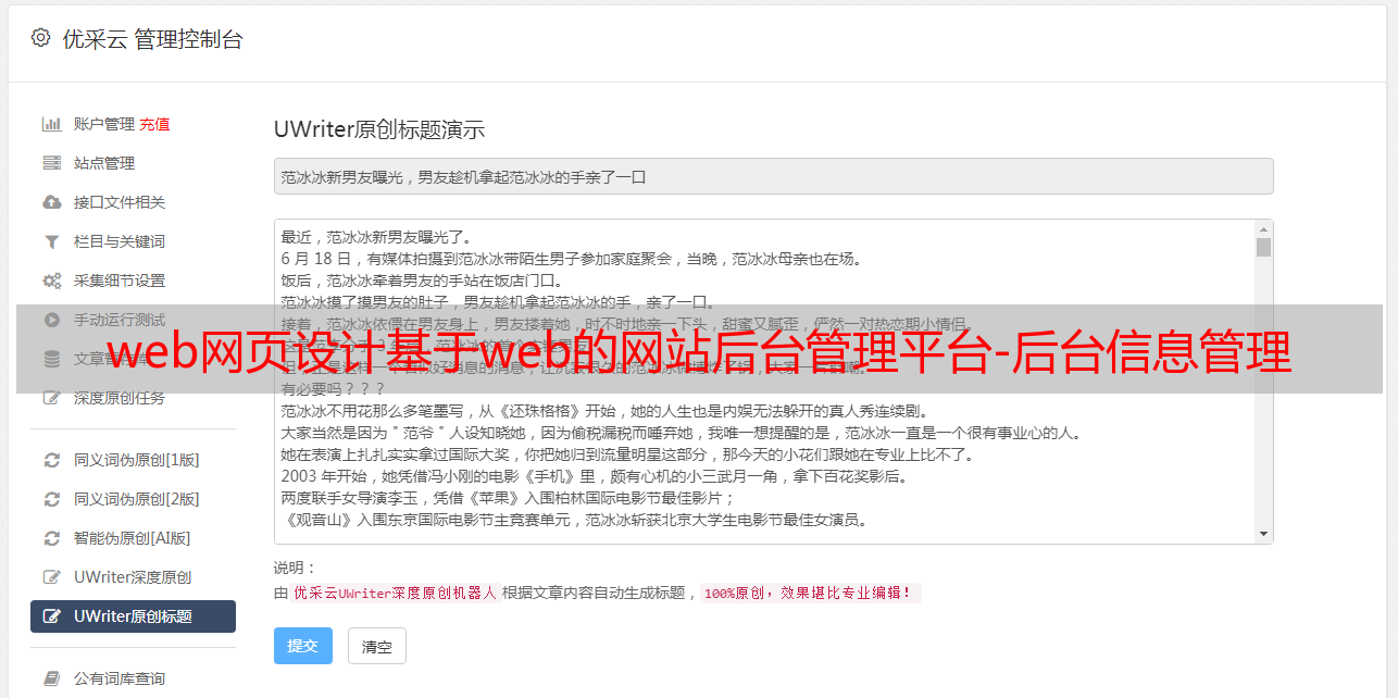 优采云 发布时间: 2021-07-23 19:36web网页设计基于web的网站后台管理平台-后台信息管理
