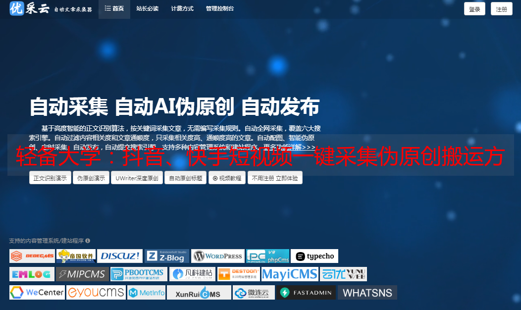 轻备大学:抖音、快手短视频一键采集伪原创搬运方法分享!
