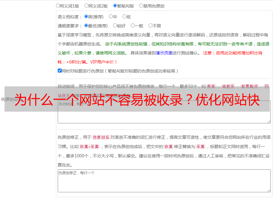 我说的是高质量的内容,就是原创的文章,一些低质量的内容会在百度开头收录,过几天就删了,所以我们在更新文章的时候注意不要加很多采集文章来增加内容,这样的内容可以百度查一下,甚至一个网站的采集文章也太多了, 网站 将被降级。