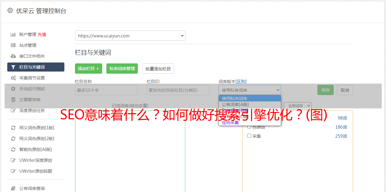 通常情况下,网站对于图片展示是必不可少的。因为搜索引擎无法识别这些图片,所以需要对这些图片进行描述。这些图片描述将帮助搜索引擎索引您的图片,从而提高与您的网站 相关的主题的收录 排名。 “营销中心-SEO优化”自带SEO设置列表“在线”,您可以在这里快速添加图片中的描述文字。