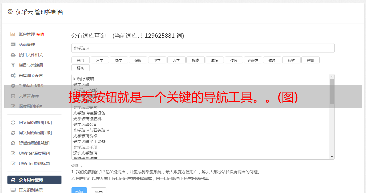 优采云 发布时间: 2021-07-25 23:22搜索按钮就是一个关键的导航工具。。(图)