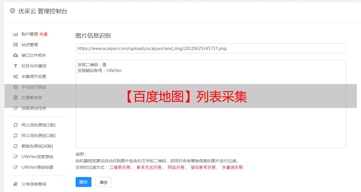 在首页输入框中,输入百度地图首页的网址:@12687888,2564918,13z,然后点击【开始采集】,可以看见优采云自动打开了网页。