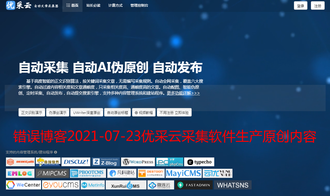 优采云采集software 是一个非常好用的文章采集软件,能产生原创内容吗?是的,但只是质量略低原创。今天错误博客()分享的内容是“优采云采集Build原创文章Three Methods”。希望能帮到你。
