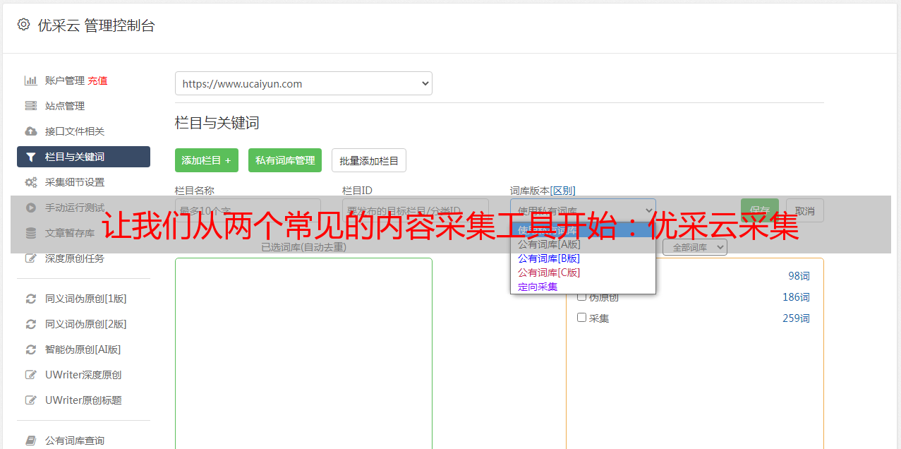 优采云 发布时间: 2021-07-27 23:03让我们从两个常见的内容采集工具开始:优采云采集