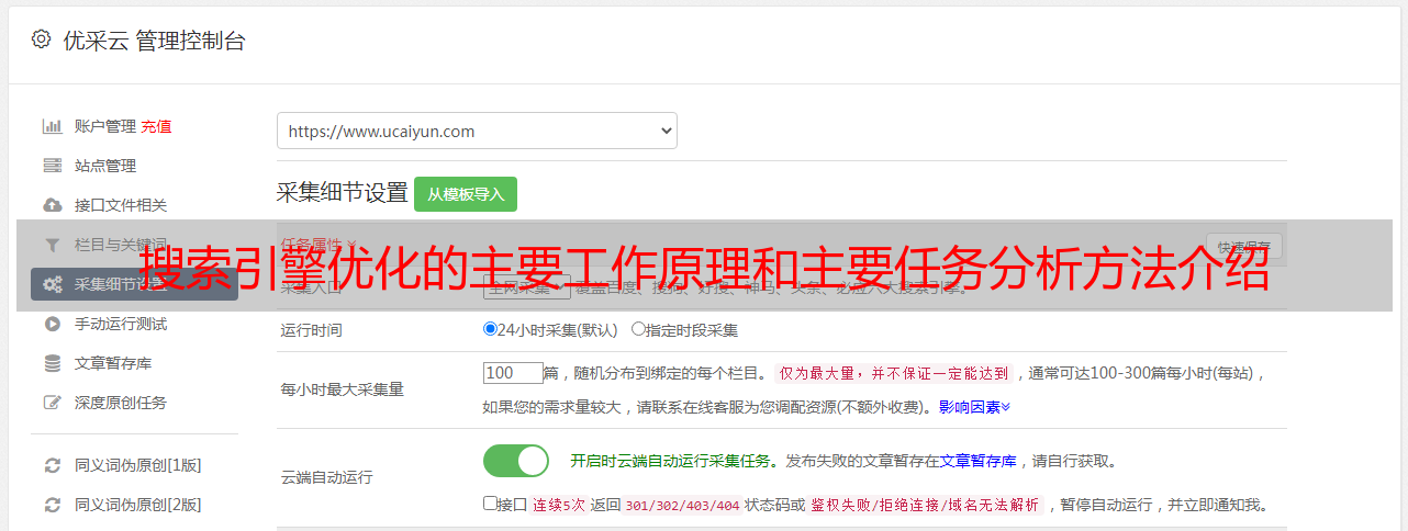 优采云 发布时间: 2021-07-29 06:17搜索引擎优化的主要工作原理和主要任务分析方法介绍