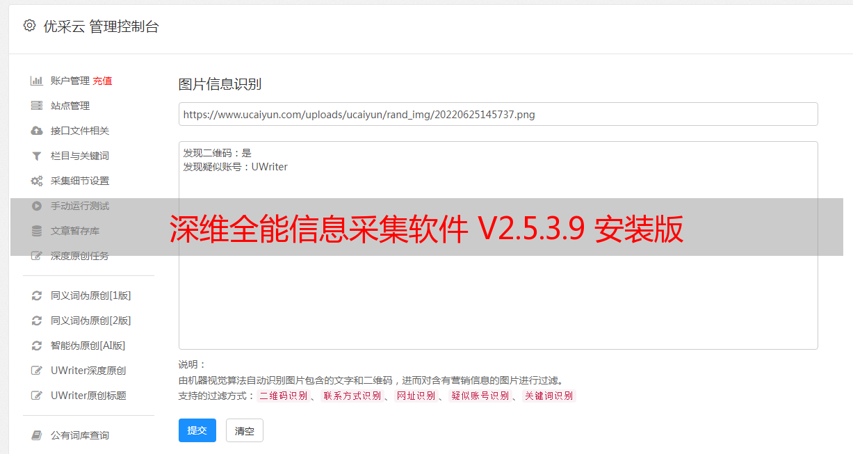 深维全能信息采集软件是一款可以通过多方面采集需要的网页内容的站长工具,深维全能信息采集软件同步支持网站跨层采集、POST采集、脚本采集、网站登录采集、动态页面采集等功能,如果您在工作中须要对网页的某个标签或则固定段落进行采集,深维全能信息采集软件可以采用交互式策略和机器学习算法,极大简化了配置操作,普通用户几分钟内即可学习把握。通过简单的配置,还可以将所采集网页中的非结构化文本数据保存为结构化的数据。