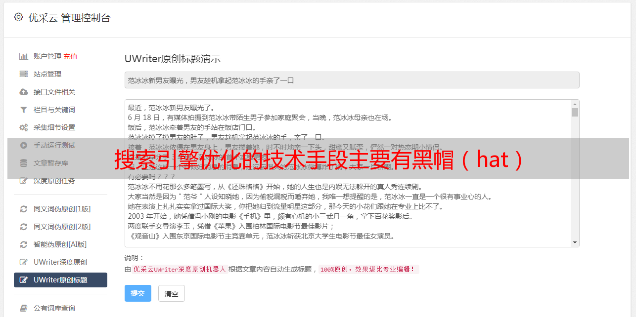 优采云 发布时间: 2021-07-30 20:13搜索引擎优化的技术手段主要有黑帽(hat)