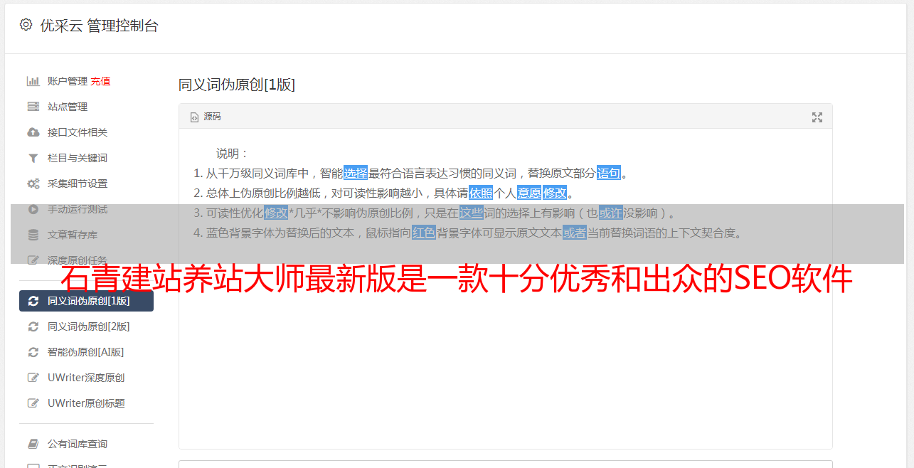 石青建站养站大师最新版是一款十分优秀和出众的SEO软件
